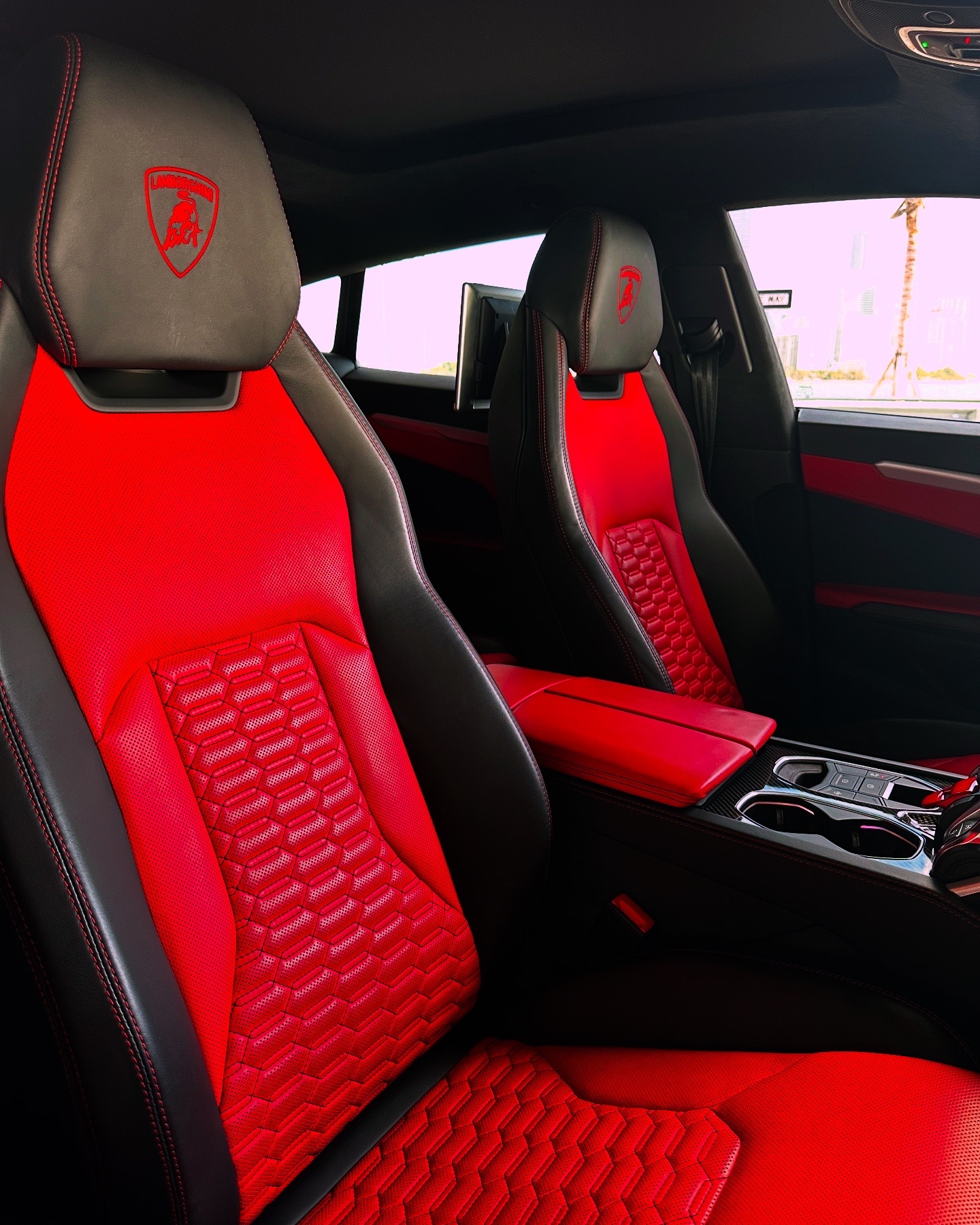 Experience the ultimate blend of speed, luxury, and style with this stunning Lamborghini Urus. With its striking black and red exterior and a sleek black-and-red leather interior, this powerhouse is designed to turn heads wherever you go. Feel the thrill of the road while enjoying top-of-the-line features like wireless charging, Wi-Fi, and an entertainment system in the rear to keep everyone entertained. The premium sound package will elevate your drive, while the sunroof lets you soak in Miami’s sunshine in style. Whether you’re cruising the city or hitting the open road, this Lamborghini Urus comfortably fits five people, making it the perfect choice for both adventure and luxury. Ready to make a statement in Miami? Your ultimate vacation begins here. Rent the Lamborghini Urus today and drive in unmatched style!